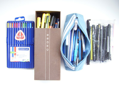 Right then, pens and pencils. At this point, I should mention, that I'm not really best suited to drawing en location. You might be able to see why. Yep, simply because I cannot make a decision. Ever. About anything. That tends to be an issue when I'm drawing and travelling; I cannot decide what to take so I just end up taking loads of stuff. Perhaps it's because I'm not that experienced at outdoor sketching yet; I haven't narrowed down my tools. Or, perhaps it's because I cannot make a decision. Ever.