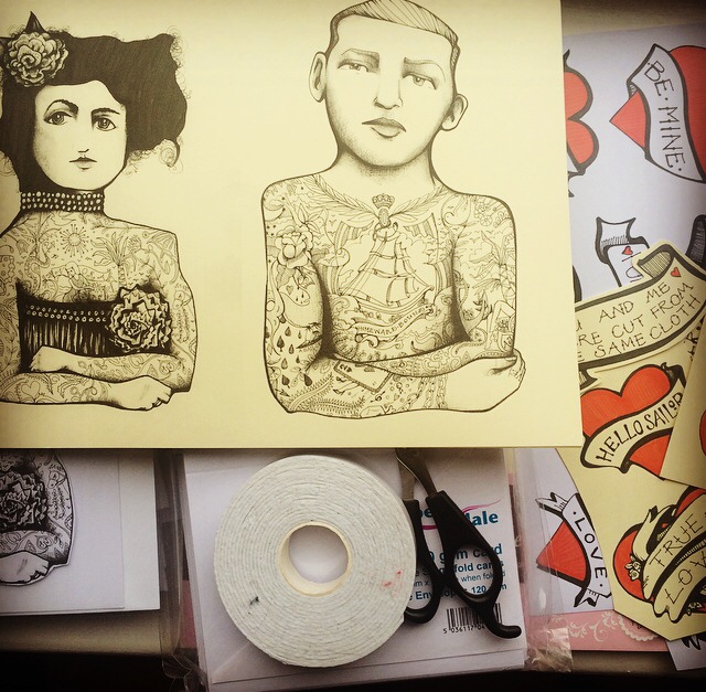 I drew Nora maybe three years ago. George is much more recent. I always wanted a companion for Nora and a couple of weeks ago I brought George to life. Both were based on two well known fascinating characters in the history of tattoo art. Nora Hildebrandt was considered the first tattooed lady and toured with the Barnum & Bailey circus whilst George Burchett had an equally amazing life and went on to become a world famous tattoo artist who even tattooed royalty.
